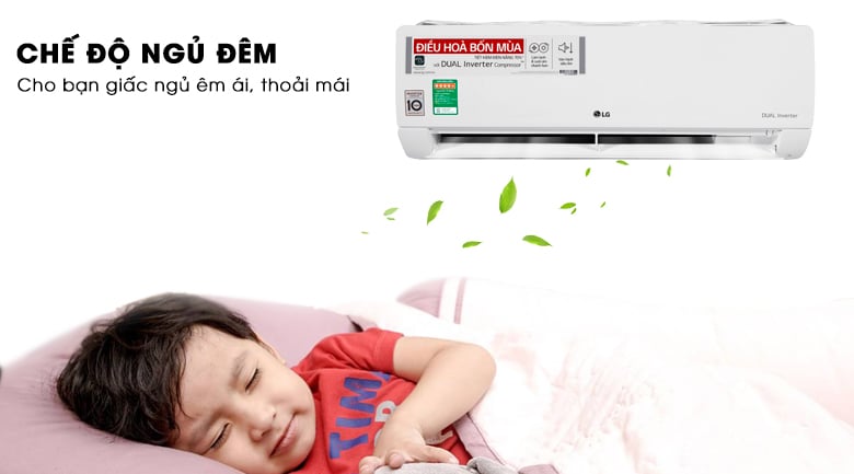 Chưa dừng lại ở đó, Điều hoà LG còn được trang bị tính năng tự điều chỉnh nhiệt độ (chế độ ngủ đêm), giúp người lớn tuổi và trẻ em có một giấc ngủ nhẹ nhàng, êm ái vào ban đêm mà không sợ bị cảm lạnh.